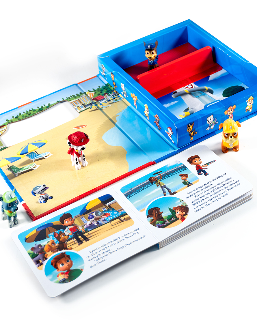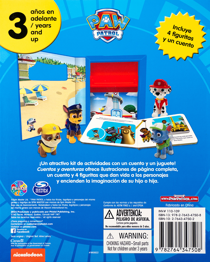 ¡Ningún trabajo es demasiado grande y ningún cachorro es demasiado pequeño! Este libro de cuentos y aventuras de Paw Patrol incluye una historia vibrante con ilustraciones a todo color y 4 figuras de los valientes cachorros. Chase, Marshall, Rubble y Rocky están listos para la acción y para estimular la imaginación de los más pequeños. Recomendado para niños a partir de 3 años. ¡Diversión y aprendizaje en una misma aventura!