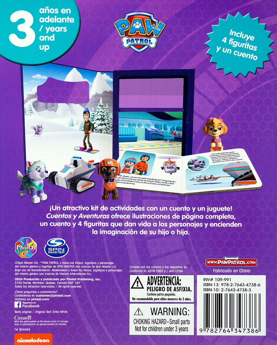 Los valientes cachorros de Paw Patrol están listos para una misión en la nieve. Este kit incluye un cuento a todo color y 4 figuritas de los personajes más queridos de la serie. Ideal para niños desde los 3 años, este libro fomenta el juego de rol, la lectura y la imaginación en un entorno divertido y lleno de acción. ¡Ninguna misión es demasiado difícil con Paw Patrol!