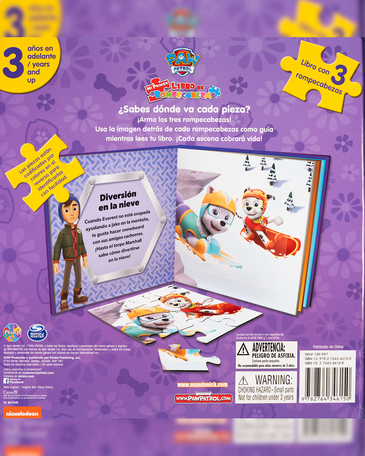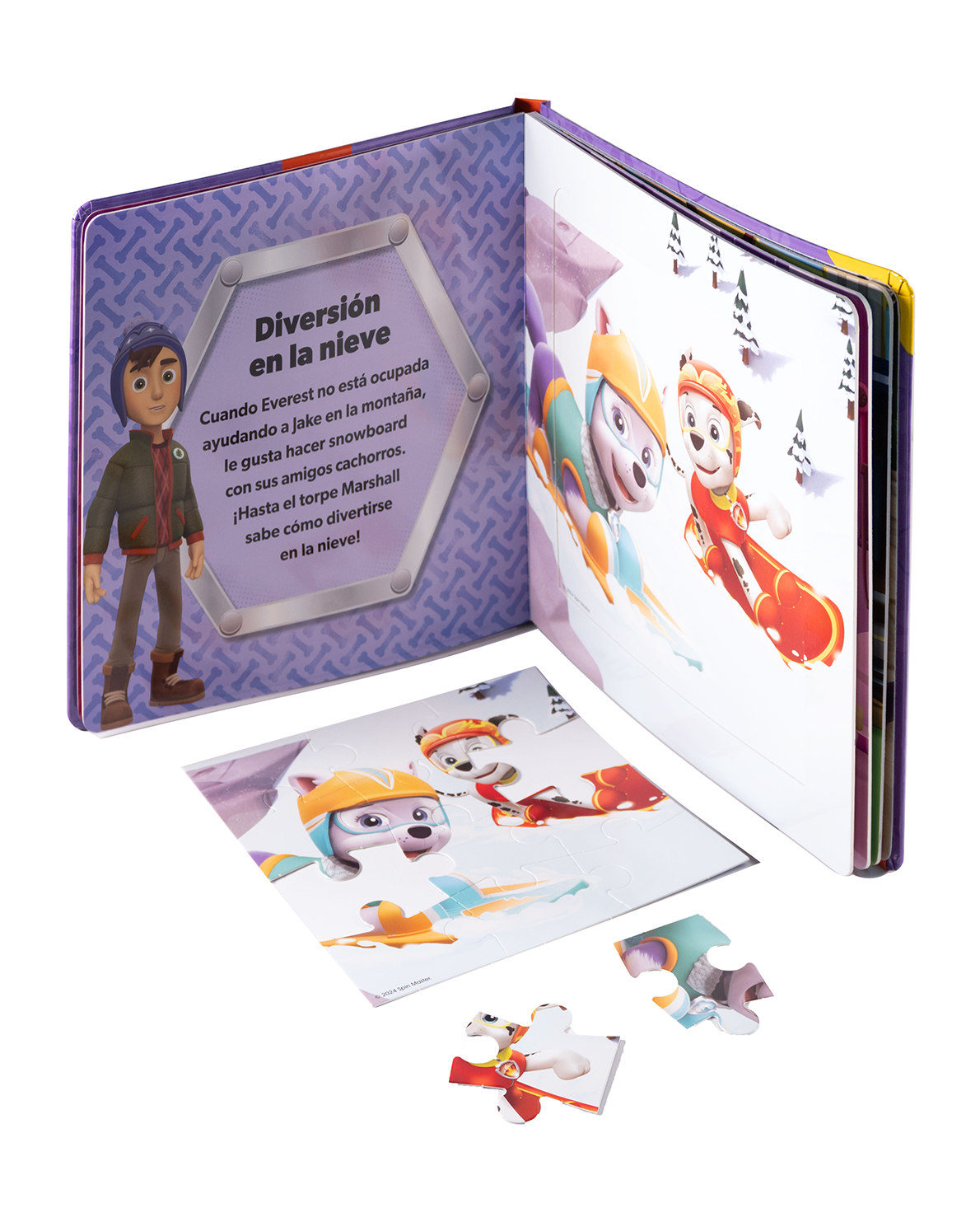 ¡Acompaña a Everest y Marshall en sus aventuras congeladas! Libro interactivo con 3 rompecabezas perfectos para pequeños fans de Paw Patrol.