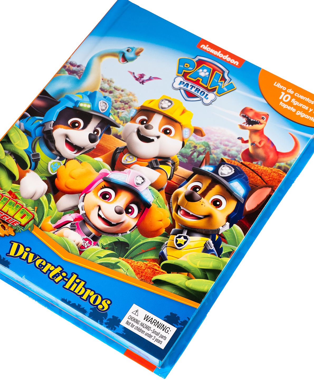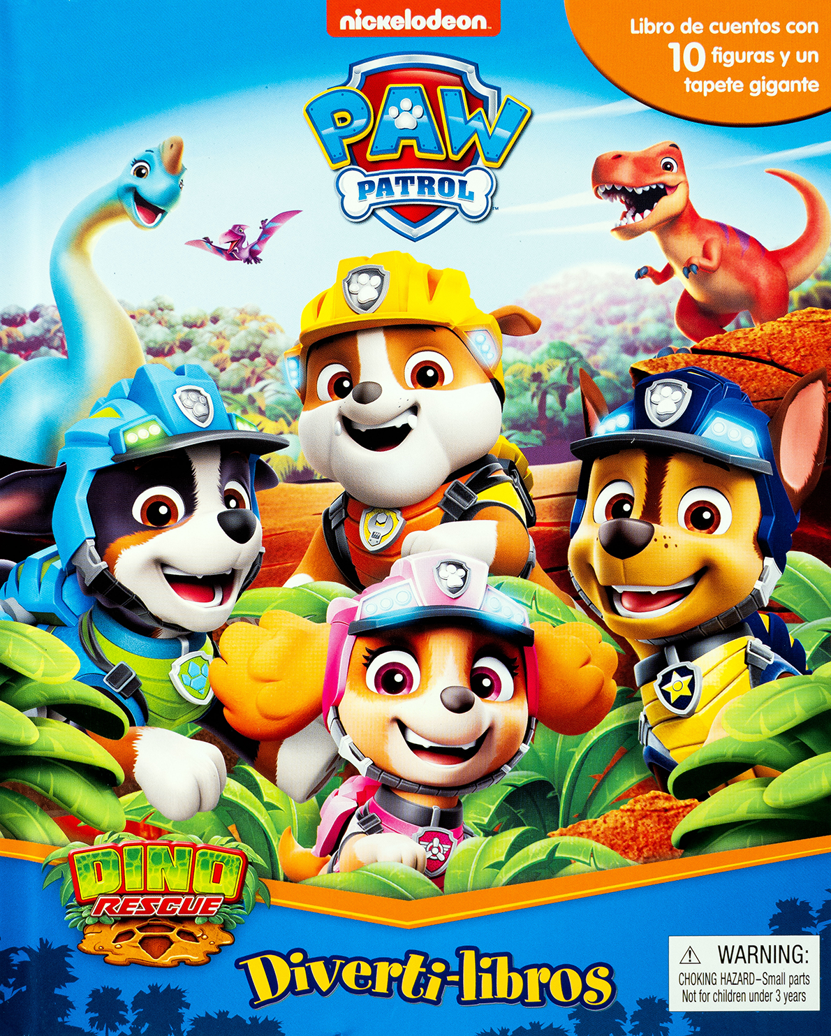 ¡Una aventura jurásica con Paw Patrol! Este Diverti-libro combina la emoción de los dinosaurios con las misiones de rescate de los cachorros más valientes. Incluye una historia llena de acción, 10 figuras de personajes y dinosaurios, y un tapete gigante para crear tu propia misión en la era prehistórica. Ideal para fans desde los 3 años.