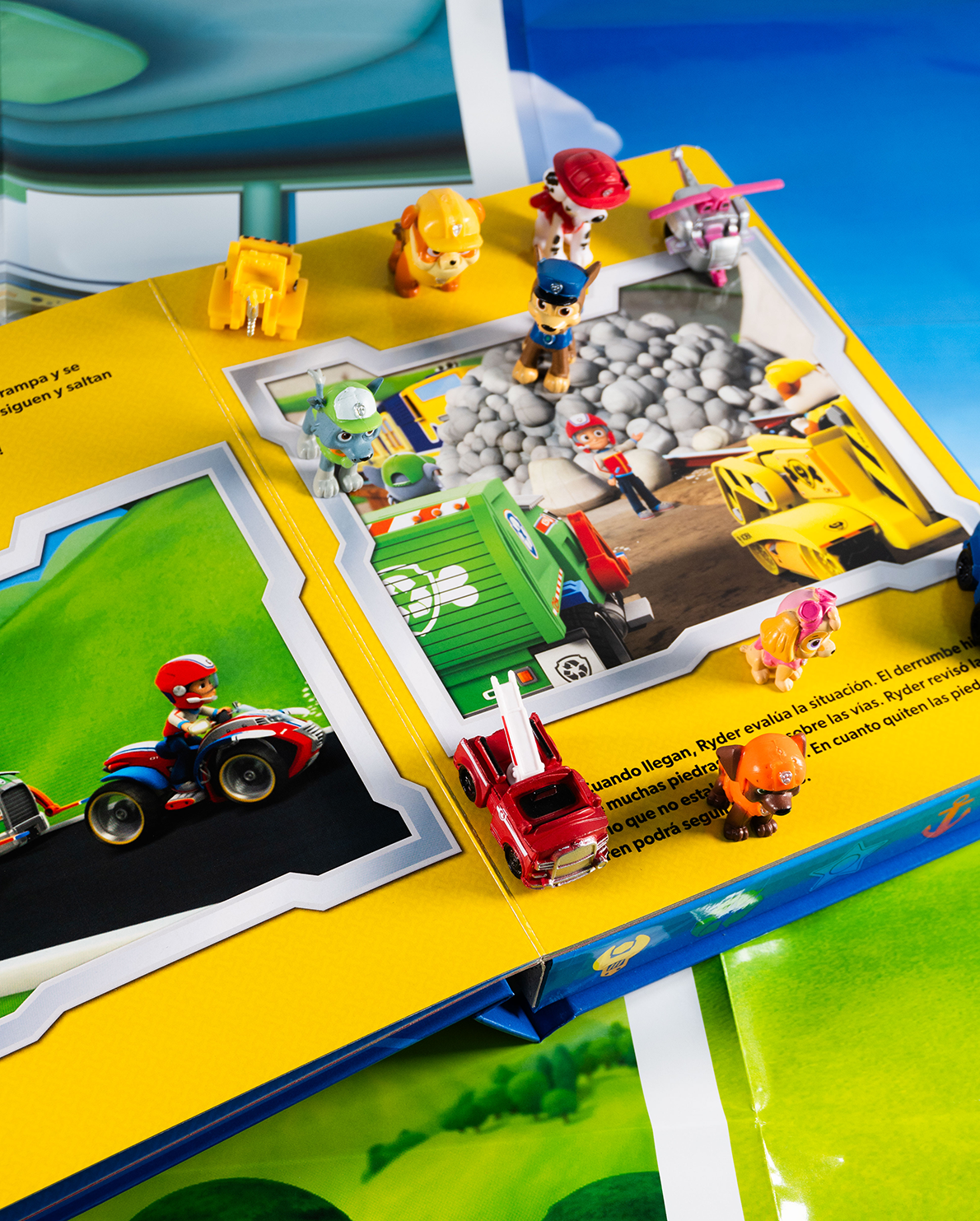 ¡Al rescate con la Patrulla Canina! Este libro interactivo trae a tus personajes favoritos de Paw Patrol en una historia llena de acción. Contiene 10 figuras de los perritos héroes y un tapete gigante para recrear misiones de rescate. Ideal para fomentar la imaginación y el juego cooperativo en niños de 3 años en adelante.