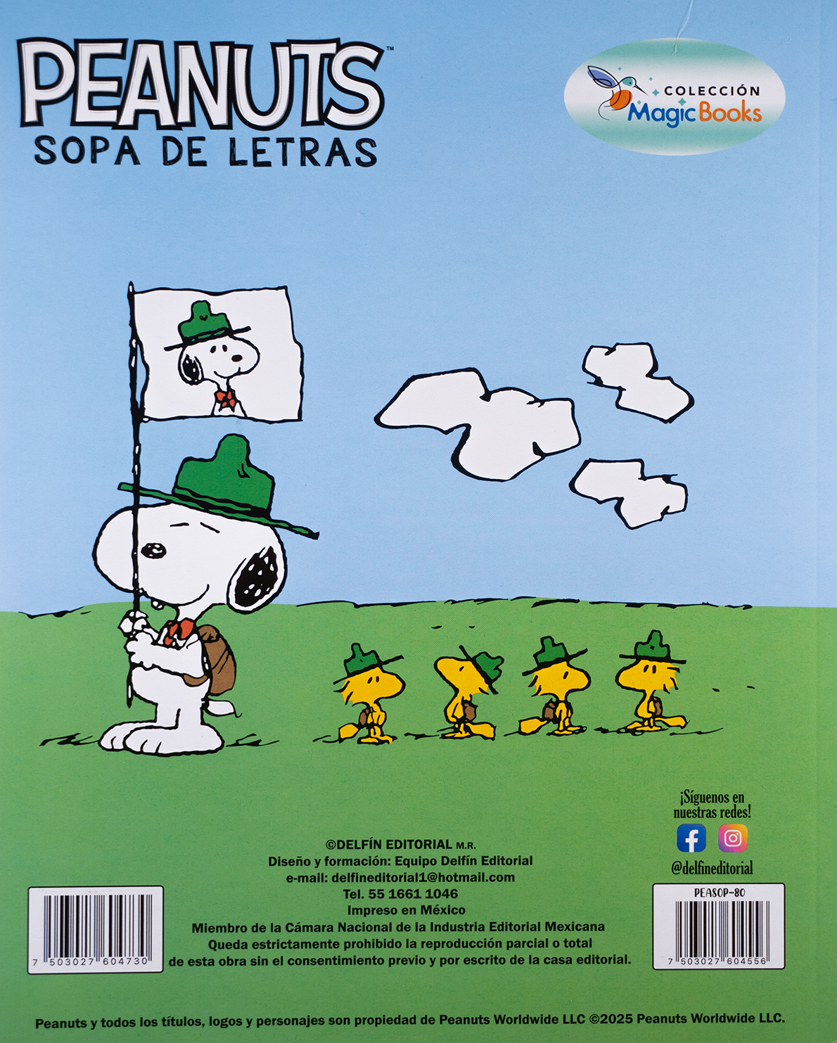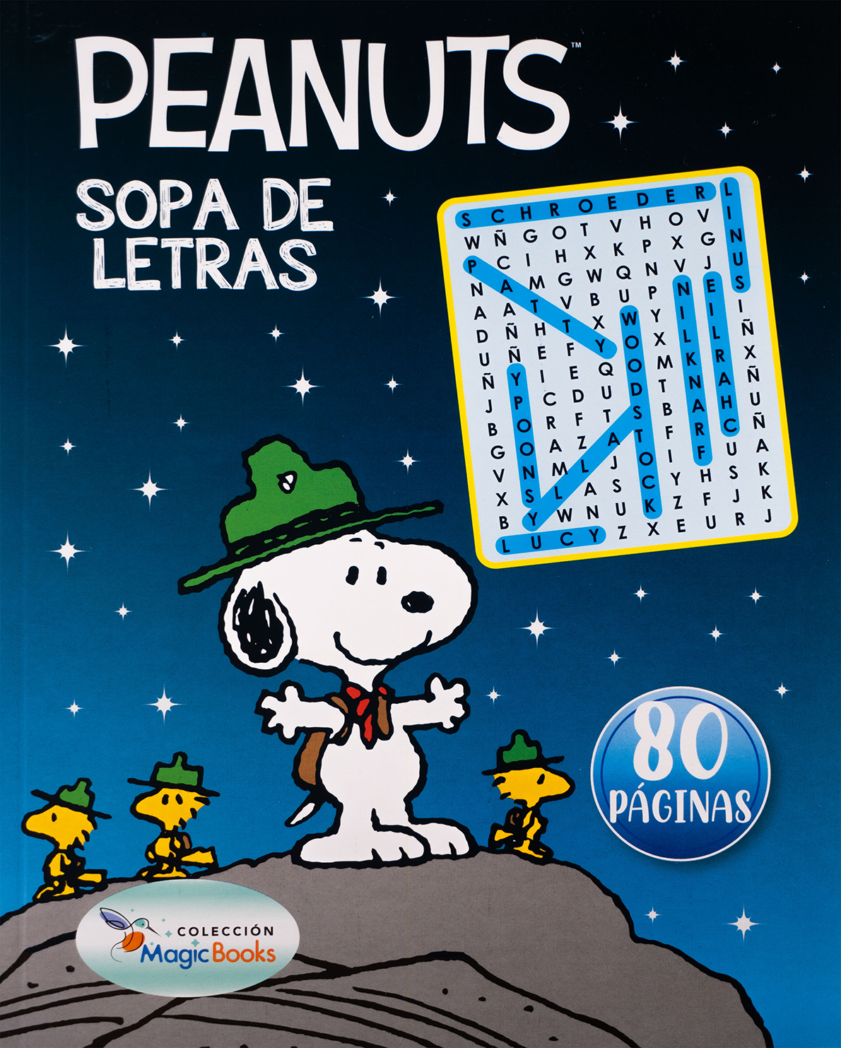“Peanuts – Sopa de Letras” es parte de la Colección Magic Books de Delfín Editorial, y está diseñado para ejercitar la mente con actividades entretenidas en compañía de los inolvidables personajes de Charles M. Schulz. En sus 80 páginas, encontrarás sopas de letras temáticas que estimulan el vocabulario, la concentración y la atención al detalle.
