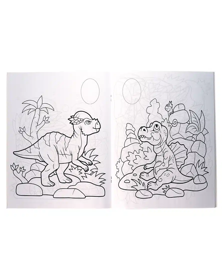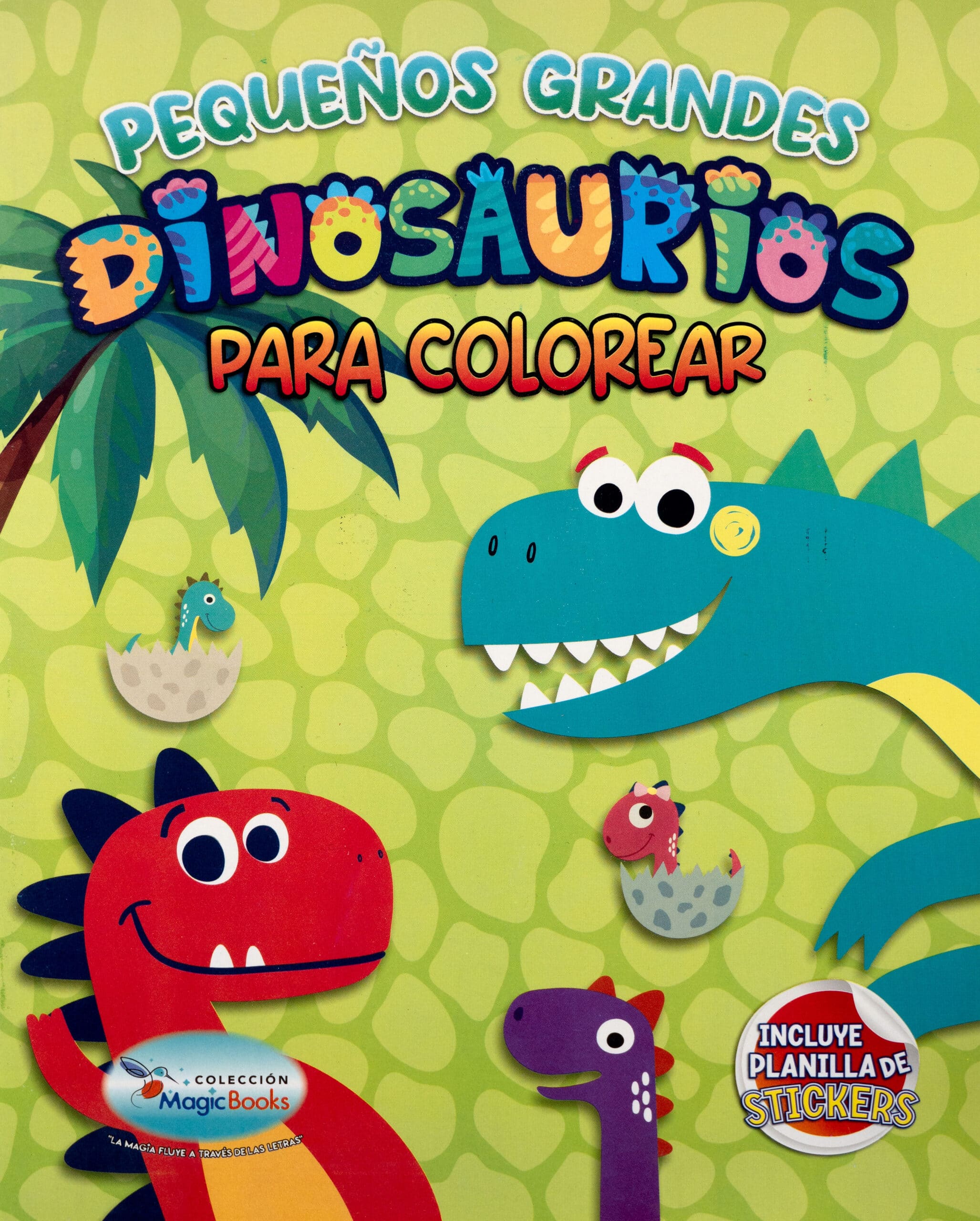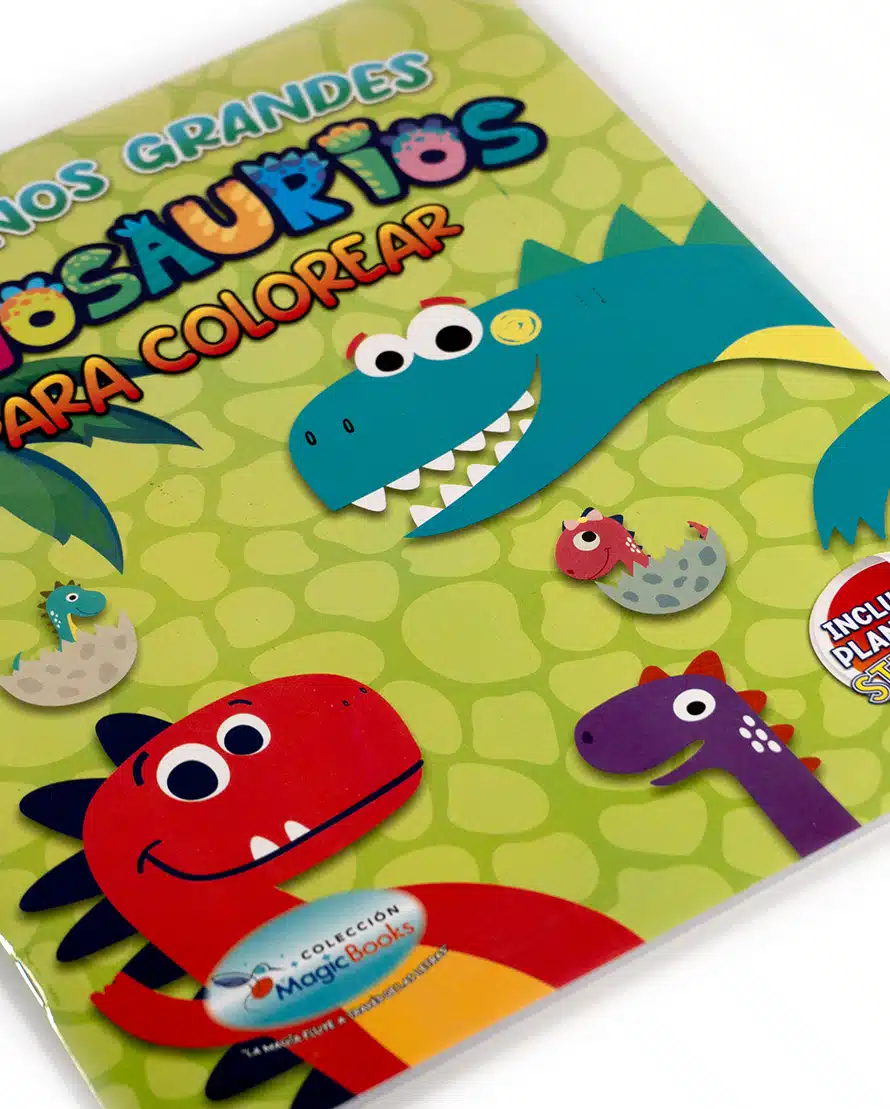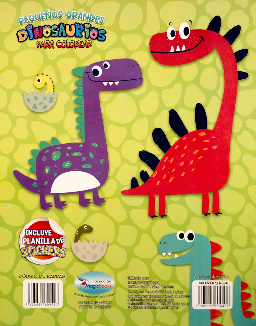 Con un estilo amigable y lleno de colores, Pequeños Grandes Dinosaurios para colorear está pensado para los más pequeños del hogar. Incluye ilustraciones sencillas y adorables de dinosaurios sonrientes, huevos y escenarios divertidos para estimular la creatividad infantil. Perfecto como primera introducción al mundo de los dinosaurios y para desarrollar habilidades artísticas. Incluye planilla de stickers para jugar y decorar.