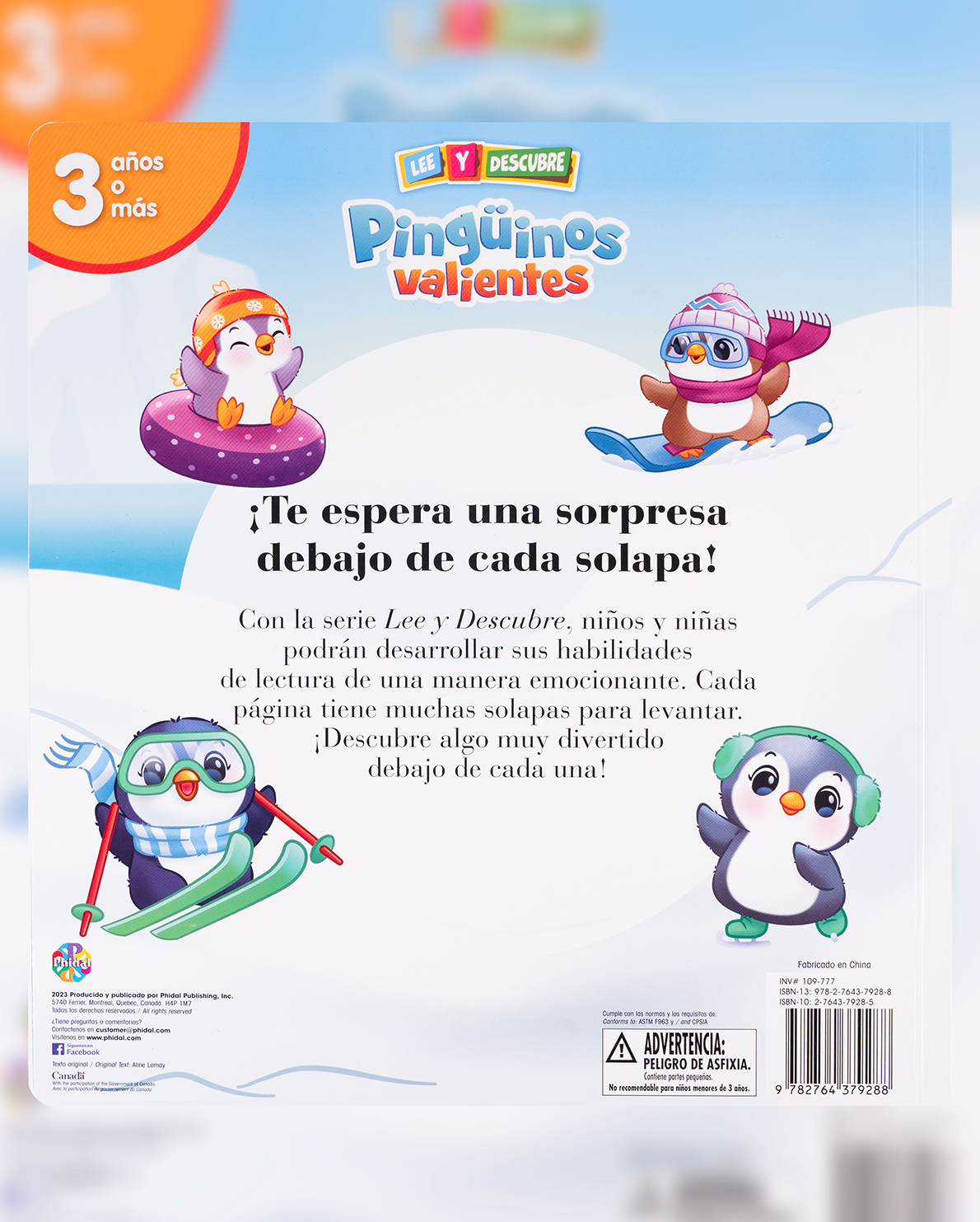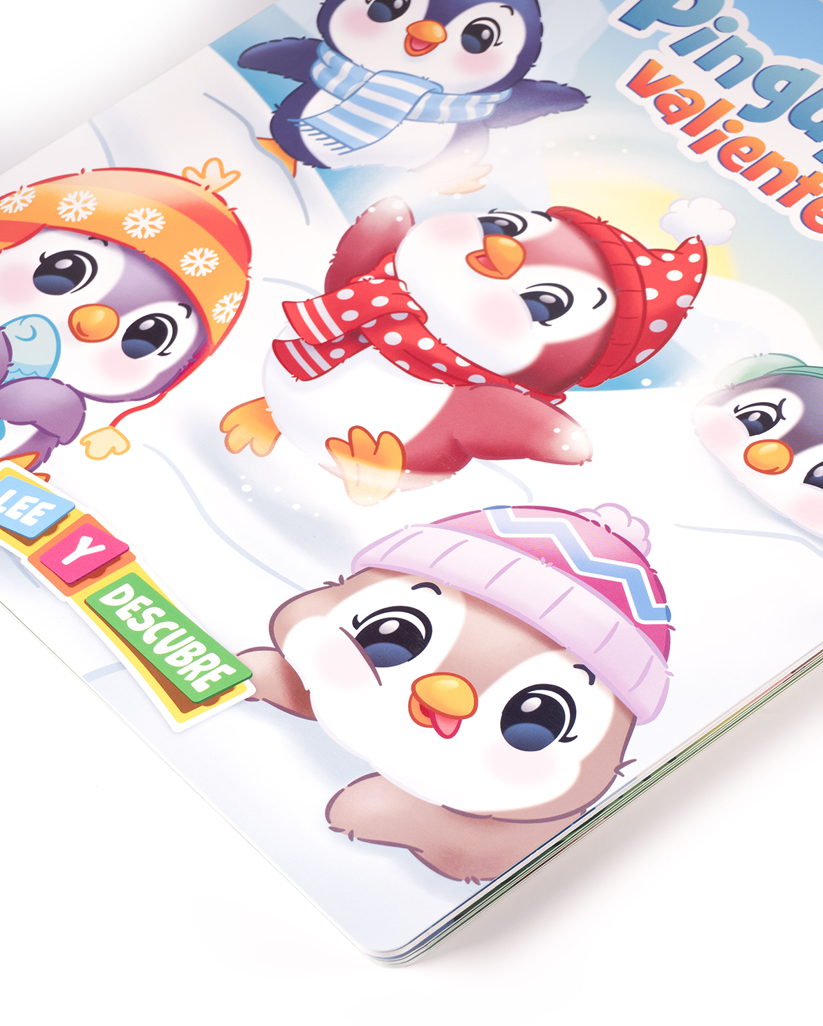 “Pingüinos Valientes – Lee y Descubre” es un libro lleno de sorpresas y aventuras diseñado especialmente para niños y niñas a partir de 3 años. Con más de 40 solapas interactivas, cada página invita a levantar, explorar y encontrar algo divertido escondido bajo cada pestaña.