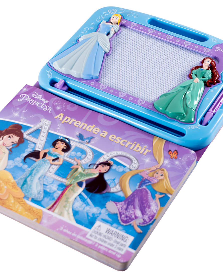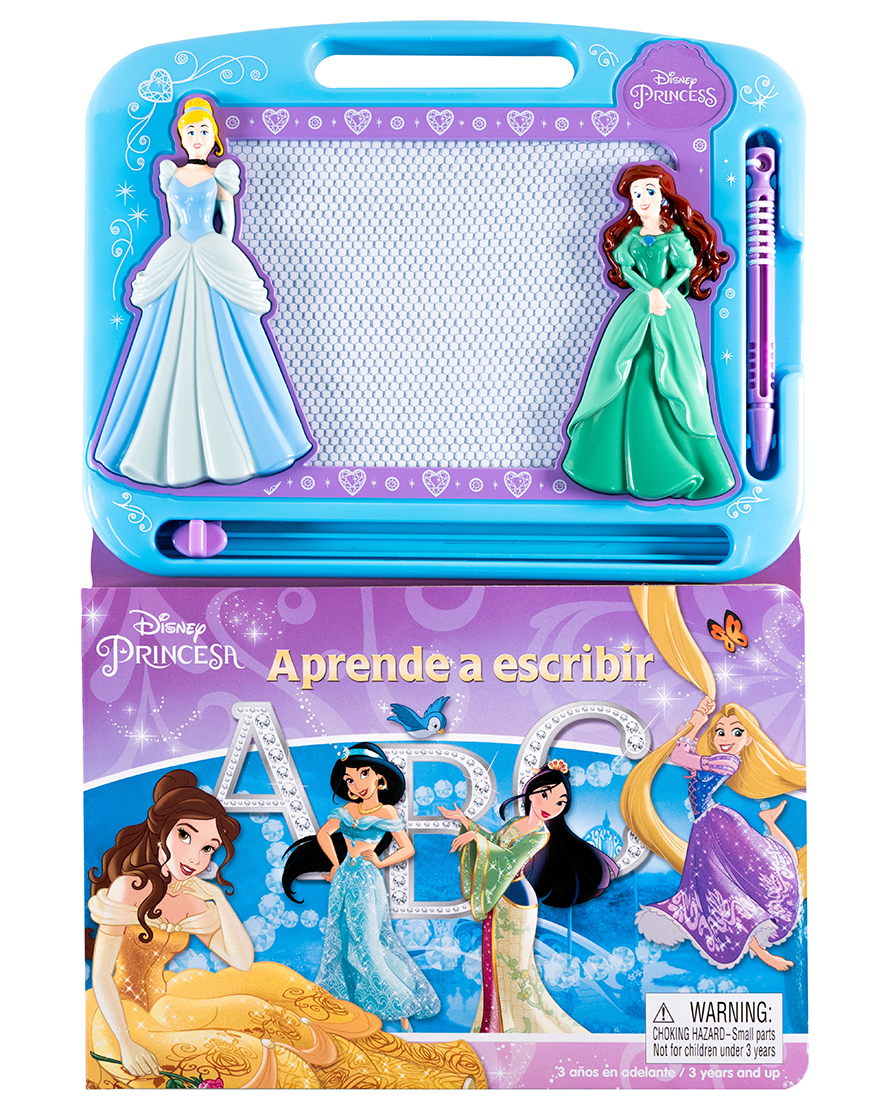¡A las princesas Disney les encanta aprender letras! Únete a Ariel, Cenicienta, Rapunzel y muchas más en esta aventura educativa. Este libro interactivo con pizarra magnética incluye una pluma para trazar letras y practicar el abecedario una y otra vez. Perfecto para niños a partir de los 3 años que están aprendiendo a escribir de forma divertida.