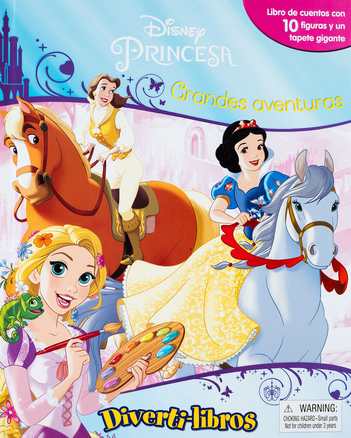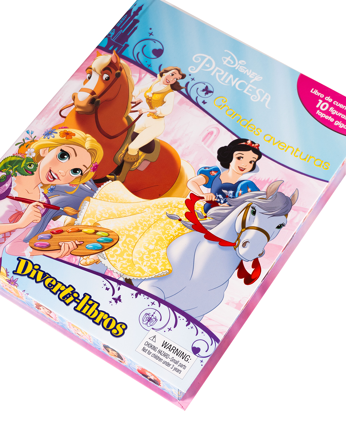 Sumérgete en el mundo encantado de las Princesas Disney con este hermoso Diverti-libro. Incluye una historia con ilustraciones de Ariel, Bella, Rapunzel y más, 10 figuras coleccionables y un tapete gigante con escenarios como castillos, bosques y salones reales. Ideal para que niñas y niños desde los 3 años jueguen, imaginen y sueñen como verdaderos príncipes y princesas.