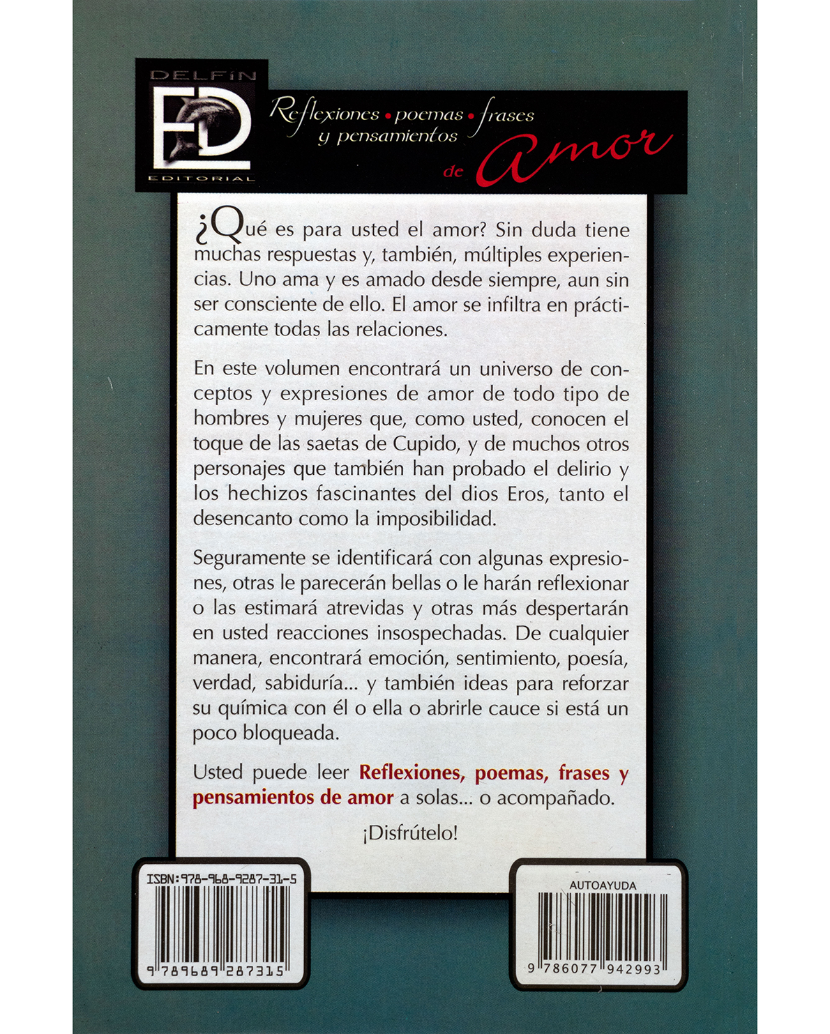 Este volumen reúne un compendio de poemas, frases y reflexiones que exploran el amor desde distintas miradas: la pasión, la ternura, la entrega, el deseo y el desengaño. A través de las palabras de diversos autores, el lector encontrará inspiración, consuelo y sabiduría en torno a uno de los sentimientos más universales. “Reflexiones, poemas, frases y pensamientos de amor” es una invitación a vivir y sentir intensamente, a reconocer la belleza del amor verdadero y a reflexionar sobre sus múltiples matices. Ideal para leer en soledad o compartir con alguien especial.