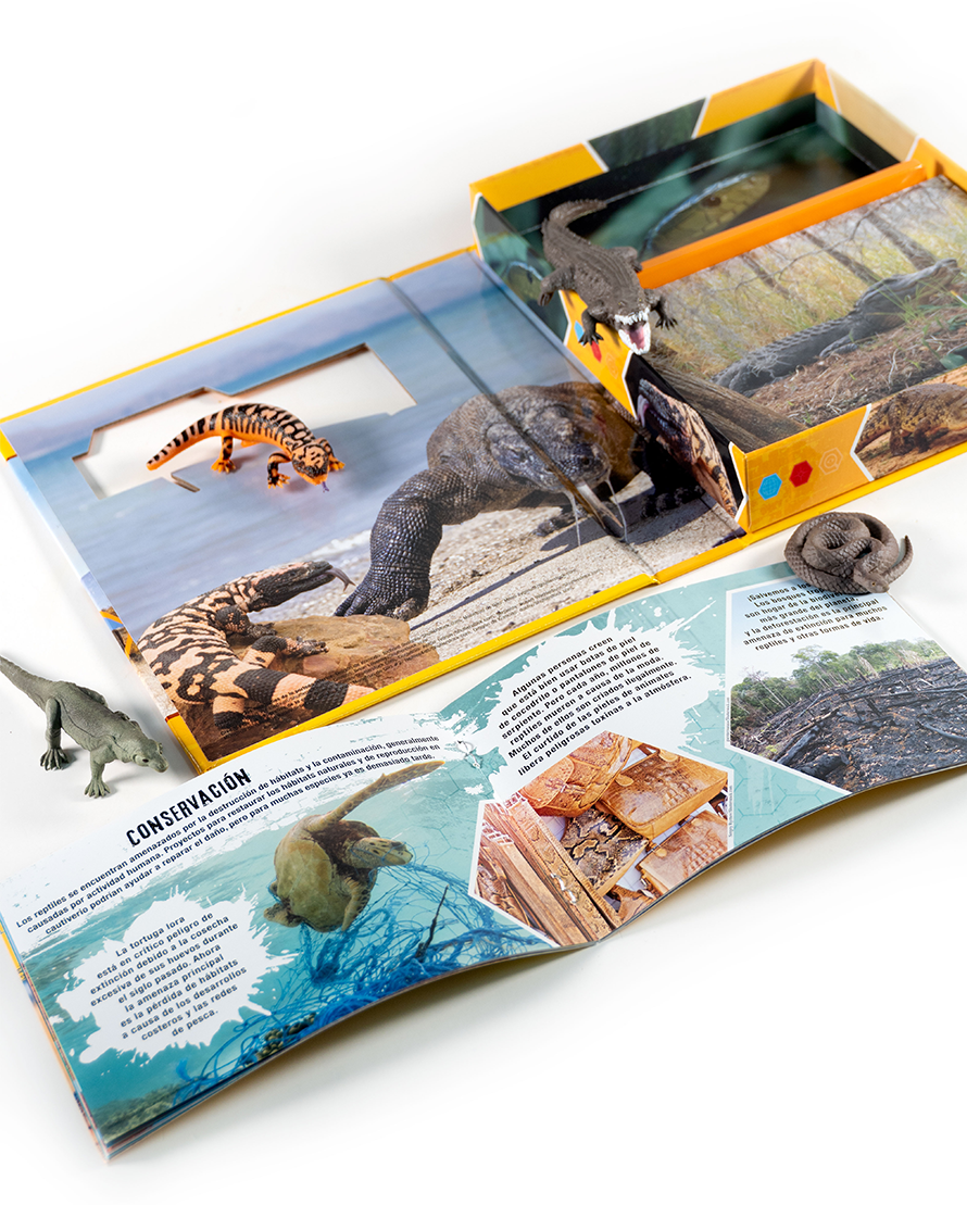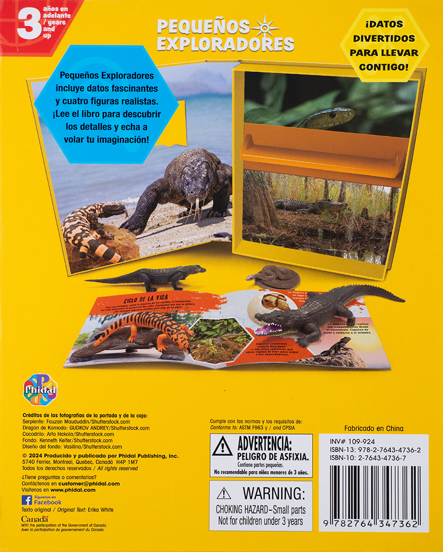 ¡Explora el fascinante mundo de los reptiles con este set educativo! Incluye un libro ilustrado con datos interesantes sobre cocodrilos, serpientes y más, además de 4 figuras realistas para jugar mientras aprenden. Diseñado para pequeños exploradores a partir de 3 años, este libro fomenta el conocimiento de la naturaleza de forma entretenida y segura.