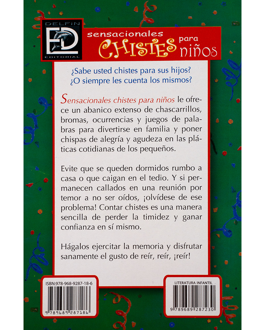Sensacionales chistes para niños ofrece un variado repertorio de bromas, ocurrencias y juegos de palabras pensados especialmente para el público infantil. Esta obra no solo busca entretener, sino también estimular la imaginación, la agudeza mental y la memoria.