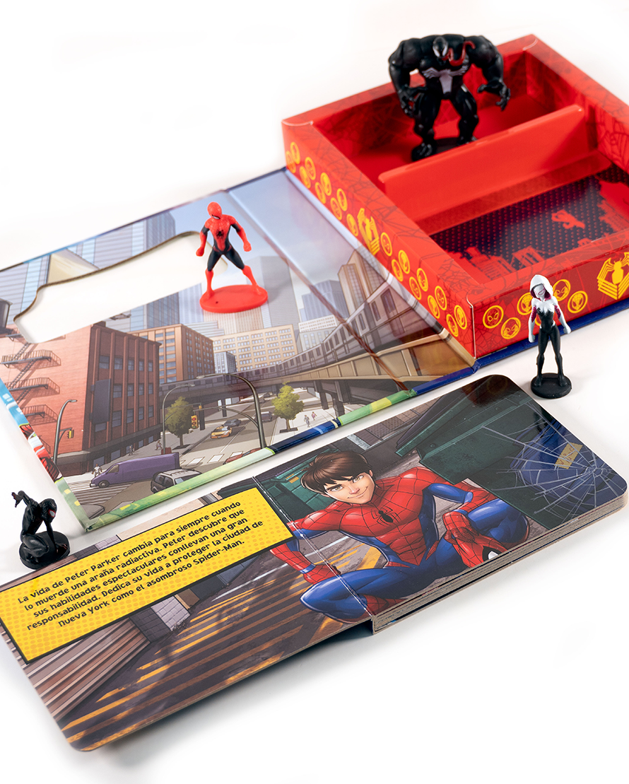El Spider-Man clásico está listo para la acción. Este kit incluye 4 figuritas y un emocionante cuento para vivir aventuras sin fin.