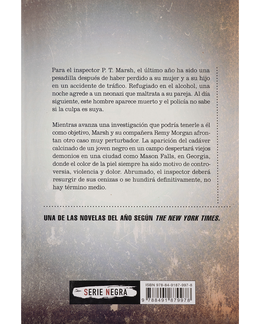 Para el inspector P. T. Marsh, el último año ha sido devastador: perdió a su esposa e hijo en un accidente y se hundió en el alcohol. Una noche, agrede a un neonazi y, al día siguiente, este aparece muerto. ¿Fue él el responsable? Mientras lucha con la culpa, un nuevo caso irrumpe: el cuerpo calcinado de un joven afroamericano en un campo de Georgia. La investigación desata tensiones raciales y personales que pondrán a prueba su resistencia. Una historia dura y conmovedora donde no hay término medio: el inspector deberá renacer de sus cenizas o ser consumido por ellas.