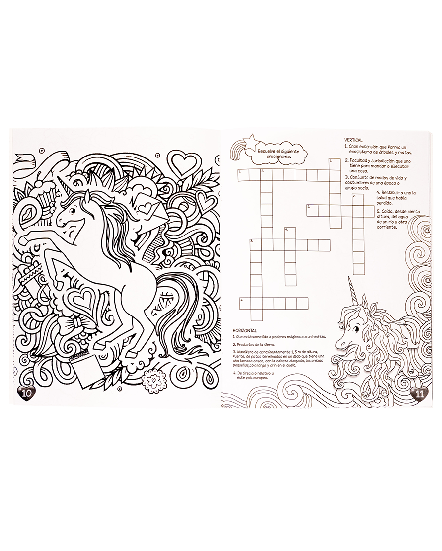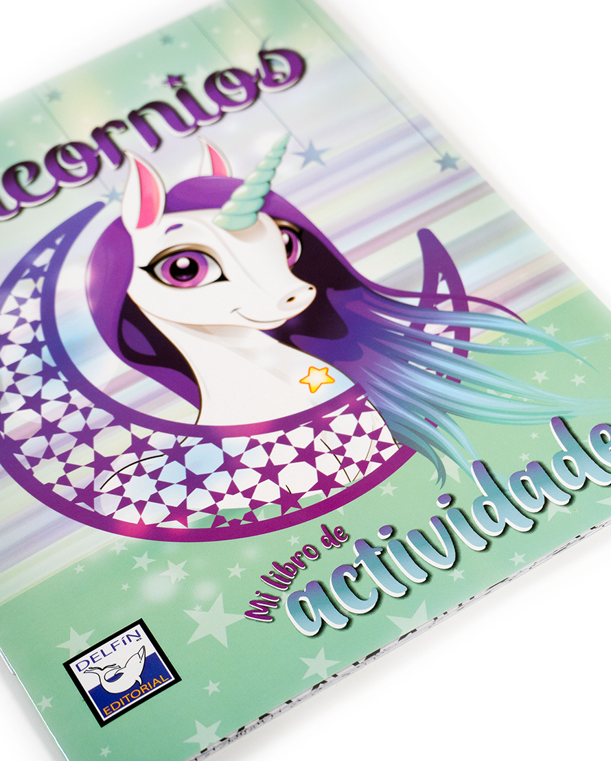 Un mágico libro de actividades y coloreo con adorables unicornios.